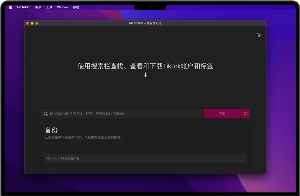 从TikTok下载内容 4K Tokkit是终极TikTok下载工具。下载高质量的TikTok挑战、字幕、完整帐户、标签、歌曲相关视频和单曲视频。 下载TikTok标签视频 从TikTok标签保存TikTok挑战视频和其他内容。获取MP4格式、高达720p分辨率的TikTok视频。 下载TikTok用户视频 从TikTok帐户批量下载视频。保存个人资料中的所有视频并抓取TikTok用户的头像。 备份TikTok帐户 只需单击一下,即可从您的个人资料下载每个TikTok视频。保存TikTok头像并导出下载历史记录。 4K TikTok其他功能自动下载TikTok视频 随时了解您喜爱的TikTok创建者和标签的更新。自动检查新视频,每天抓取新鲜内容,无需举手。 按日期下载TikTok视频 在应用内日历中调整下载日期范围。仅下载在指定时间段内发布的视频。 保存TikTok视频字幕 下载带有原始字幕的TikTok视频。将光标悬停在视频图标上以查看应用程序中的标题并将其复制到剪贴板。 下载有相同音乐的剪辑 抓取与特定音频相关的所有TikTok视频。输入歌曲名称以开始保存以该曲目为特色的所有TikTok视频。 单独保存TikTok片段 一次保存一个TikTok视频。输入TikTok视频的链接,并将其作为单个文件下载到您的计算机。 访问私人内容和推荐剪辑 保存推荐给特定TikTok用户的视频。从您关注的私人TikTok帐户下载视频。 更改TikTok位置 浏览和下载在其他地理区域流行的TikTok视频。使用内置代理设置切换到其他国家/地区。 |