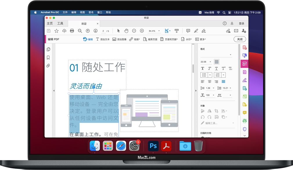 –在任何地方工作。从计算机或Acrobat DC移动应用程序创建,导出和签名PDF。