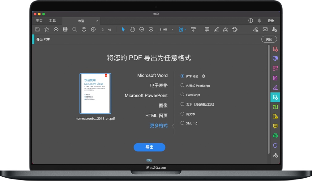 无需从头开始重新创建文档。使用Adobe Acrobat DC,您可以将PDF快速导出为其他文件格式,甚至可以编辑PDF中的文本。