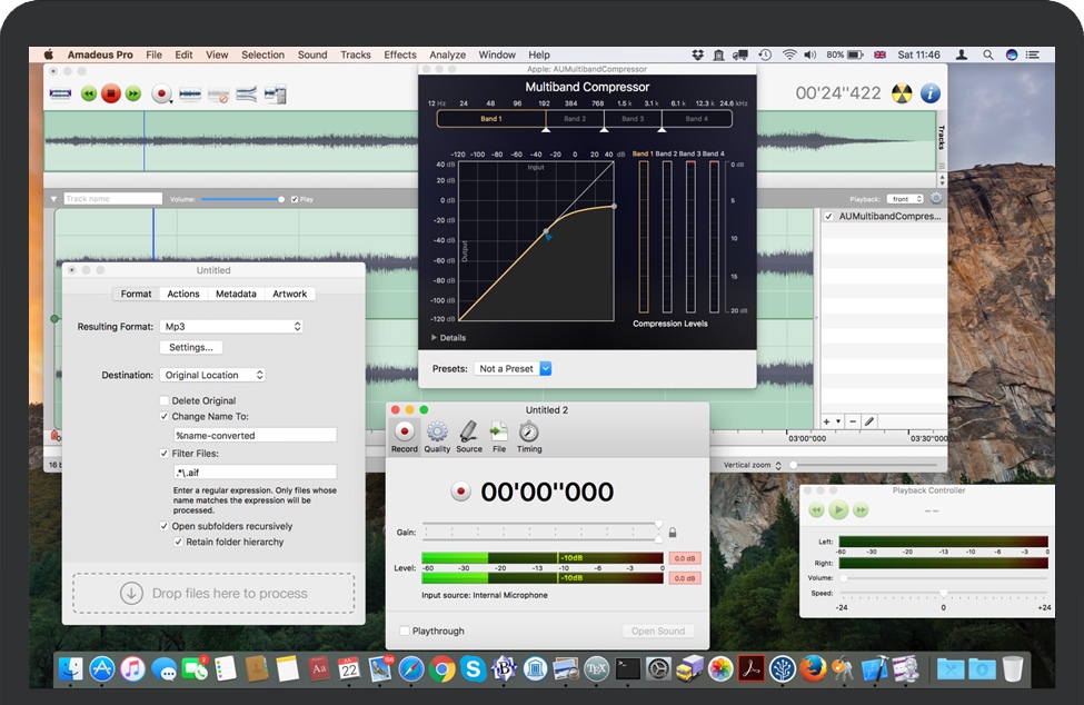 有您想要转换为Mp3的整个文件集合,但是您首先要对其进行规范化,并使它们很好地淡入和淡出。几个小时的工作透视?让Amadeus Pro为您完成工作!强大的批处理处理器不仅使您能够在任何受支持的格式之间转换大量文件,而且还可以指示Amadeus Pro应用任何顺序的音效。
