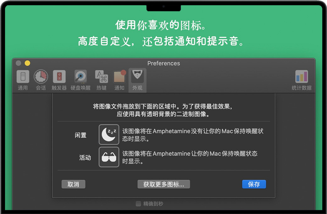 Amphetamine for Mac 是一款为macOS打造的最棒的防休眠APP。Amphetamine可以一键让你的Mac及显示器保持唤醒状态,也可以通过设置易用的Triggers(触发器)来让它自动化执行。Amphetamine功能非常强大,对有自定义需求的人来说,它还包含了许多高级功能;但对于不需要花哨功能的人来说,它仍然直观且容易上手。