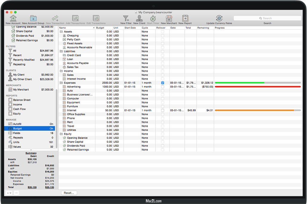 BeanCounter for Mac 是一款功能强大而又易于使用的专业记账、时间跟踪和开票应用程序。它的特点是复式记账,支持多种货币,以及一个简单的单窗口用户界面。管理账户、客户、项目、商户和无限数量的企业的账单。BeanCounter通过跟踪客户的项目任务和费用,有时任务会定时(使用包含的时间跟踪器)或不定时,而生成定制的估算和发票逐项细化任务和费用会从五个发票布局中选择或设计您自己的自定义布局,跟踪未清发票余额并管理收款。