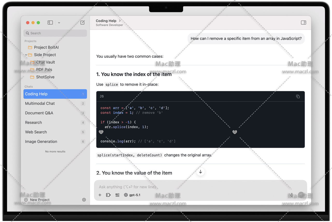 BoltAI 将专业工具、高级模型、结构化工作流程和深度自定义功能整合在一起——所有这些都融入到简洁、原生的 Mac 体验中,专为速度而打造。