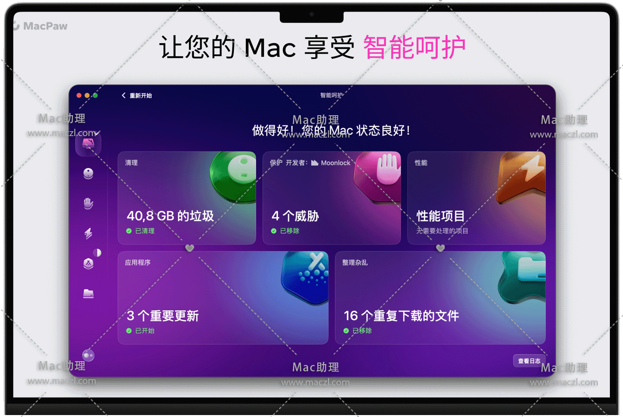 CleanMyMac for Mac 是一款功能强大的应用程序,可清洁、优化和保护您的Mac使用多年。运行即时系统清理、卸载和更新应用程序、删除恶意软件、检测和擦除任何大小的文件、提高速度并在Space Lens中查看存储的详细可视化。CleanMyMac可以让你的Mac更加强大。它可以清理大量垃圾并让您的计算机运行得更快。一切都是为了微调您的Mac。