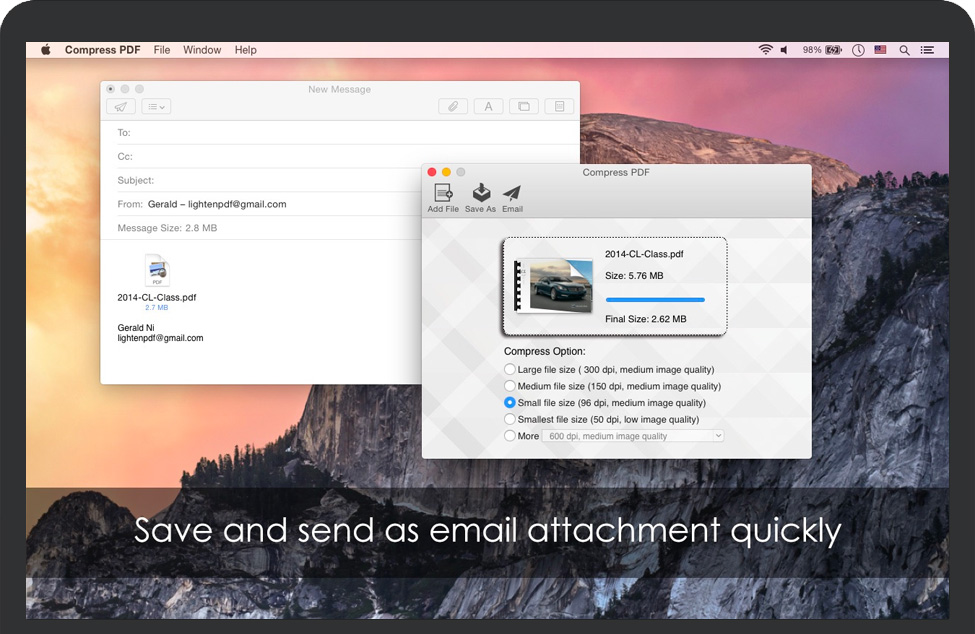 PDF压缩后,您可以发送更小更快的电子邮件、节省存储空间、减少文件上传或下载时间。