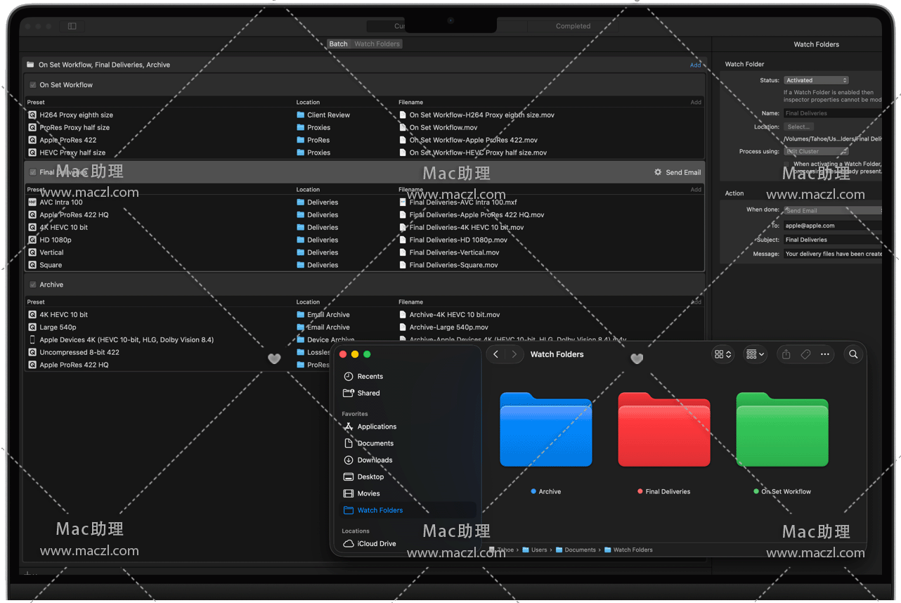Compressor 与 Final Cut Pro 和 Motion 高度集成,为视频转换增添了功能和灵活性。快速自定义输出设置,优化图像,以及将影片打包用于在 iTunes Store 中出售。