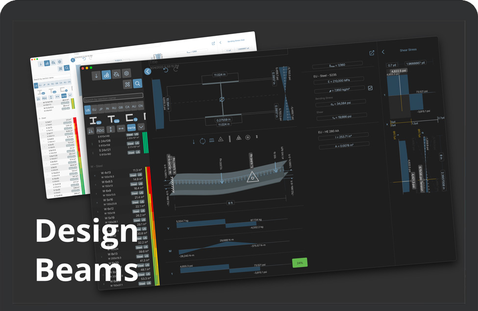 Deflection Pro for Mac 是一款适用于苹果macOS计算机上执行结构梁分析的软件平台;中文名叫做梁的挠度,既是一个强大的学习伙伴,也是机械工程师、土木工程师、结构工程师和建筑师的长期参考应用。梁的挠度是可用于结构梁分析的最具交互性,最快和最精确的应用程序。可视化设计,并立即获得工程结果,图形和方程式!