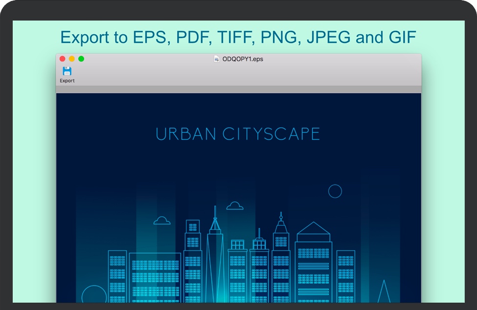 打开的PS, PDF, SVG, EPS和Ai图像可以以其他图像格式转换/保存为PDF(矢量),JPEG(.jpg),PNG(.png)和TIFF(.tiff)。