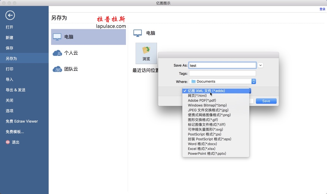 亿图图示(Edraw Max) for Mac兼容很多文件格式,可以一键导出到PDF, Word, PPT, Excel, 图片, HTML, Visio等文件格式,方便您与他人进行分享。导出的文件仍然保留矢量格式。例如,您将绘制好的图保存成PPT文件后,打开PPT文件,里面的文本和图形还可以在PPT文档里继续进行编辑。