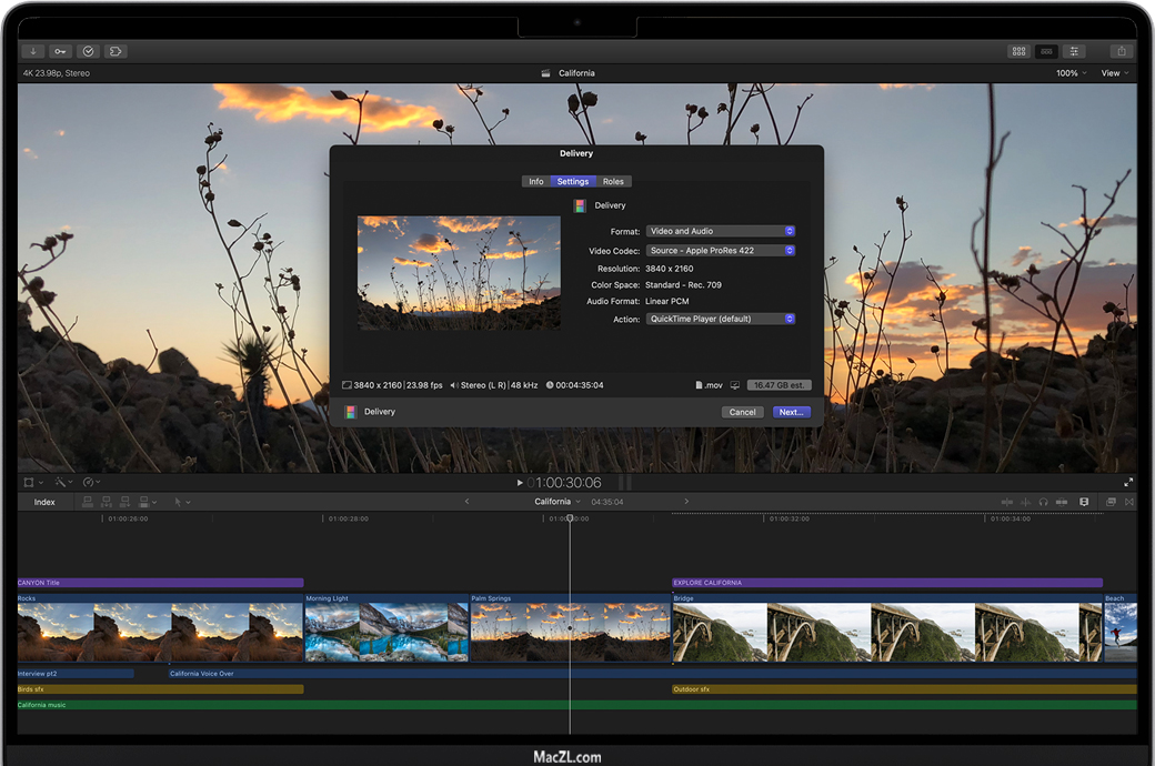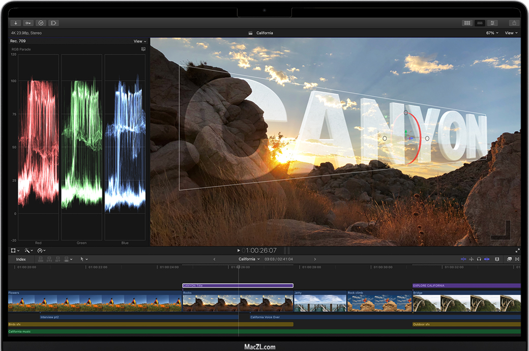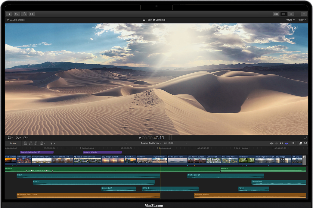 Final Cut Pro X for Mac 是一款结合了革命性的视频编辑软件,Final Cut Pro具有强大的媒体组织和令人难以置信的性能,让您以思维的速度进行创作。Final Cut Pro包含一系列适用于专业视频编辑器的强大新功能,Final Cut Pro通过360°视频编辑和动态图形、4K HDR支持和先进的色彩校正工具彻底改变后期制作。经过彻底的重新设计后,Final Cut Pro将革命性的视频编辑与强大的媒体整理和难以置信的性能相结合,可让您极速创作。