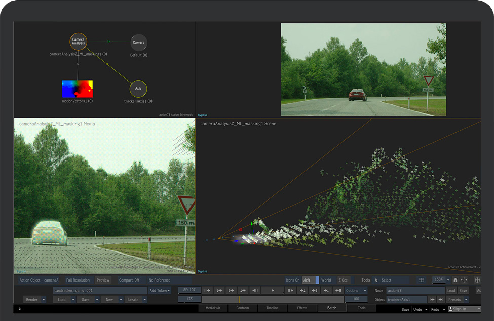 下一代相机跟踪生成相机数据、点云和 Z 深度图以轻松定位场景中的对象 | MasterGrade 创意色彩工具使用支持 HDR 且支持浮点的颜色工具,让颜色工作焕然一新 | 集成精加工核心工具集连接到调色师控制面板的集成环境中的颜色分级 |