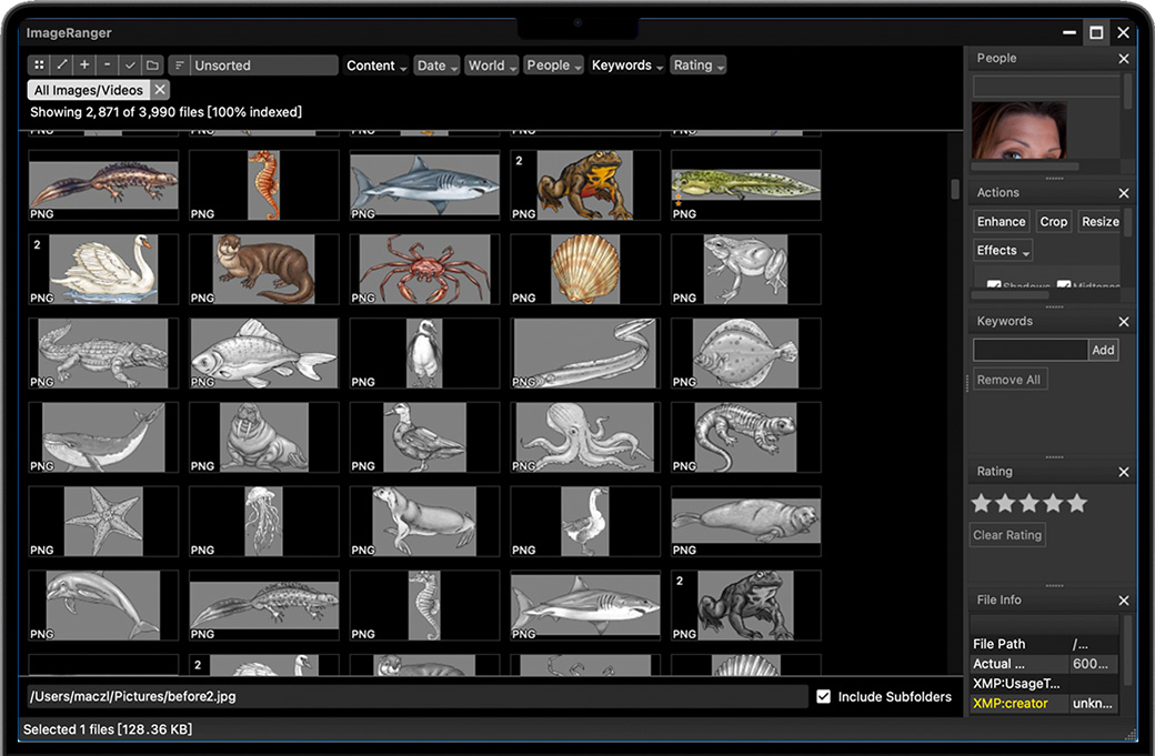 图像索引 ImageRanger 只需要遍历您的照片集一次,您就可以随时自由地搜索、排序和过滤图像。 |