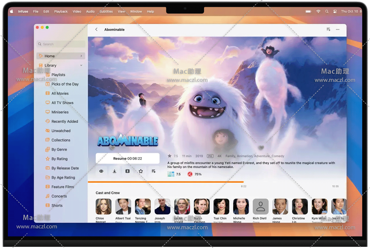 一口通吃您的视频文件 - Infuse将把您从永无宁日的视频转换中解放出来,用极美的方式在您的iPhone、iPad、Apple TV、Mac以及Vision上观赏几乎所有视频格式。Infuse已适配macOS 26 并添加更加强大的在线视频,Trakt同步,AirPlay以及字幕功能。一切尽在随手掌控中。