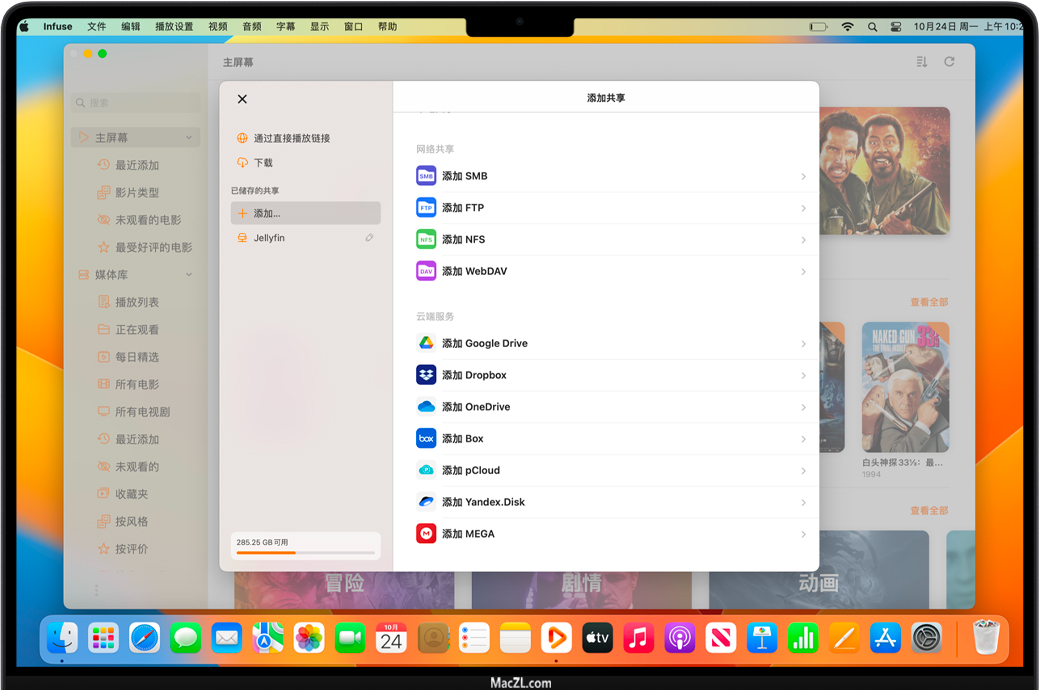 直接从Dropbox、Google Drive、OneDrive、Box、pCloud、Yandex.Disk 和 MEGA等云文件服务流式传输视频。