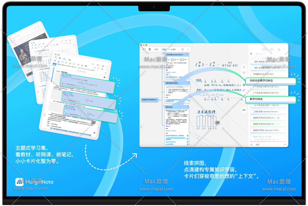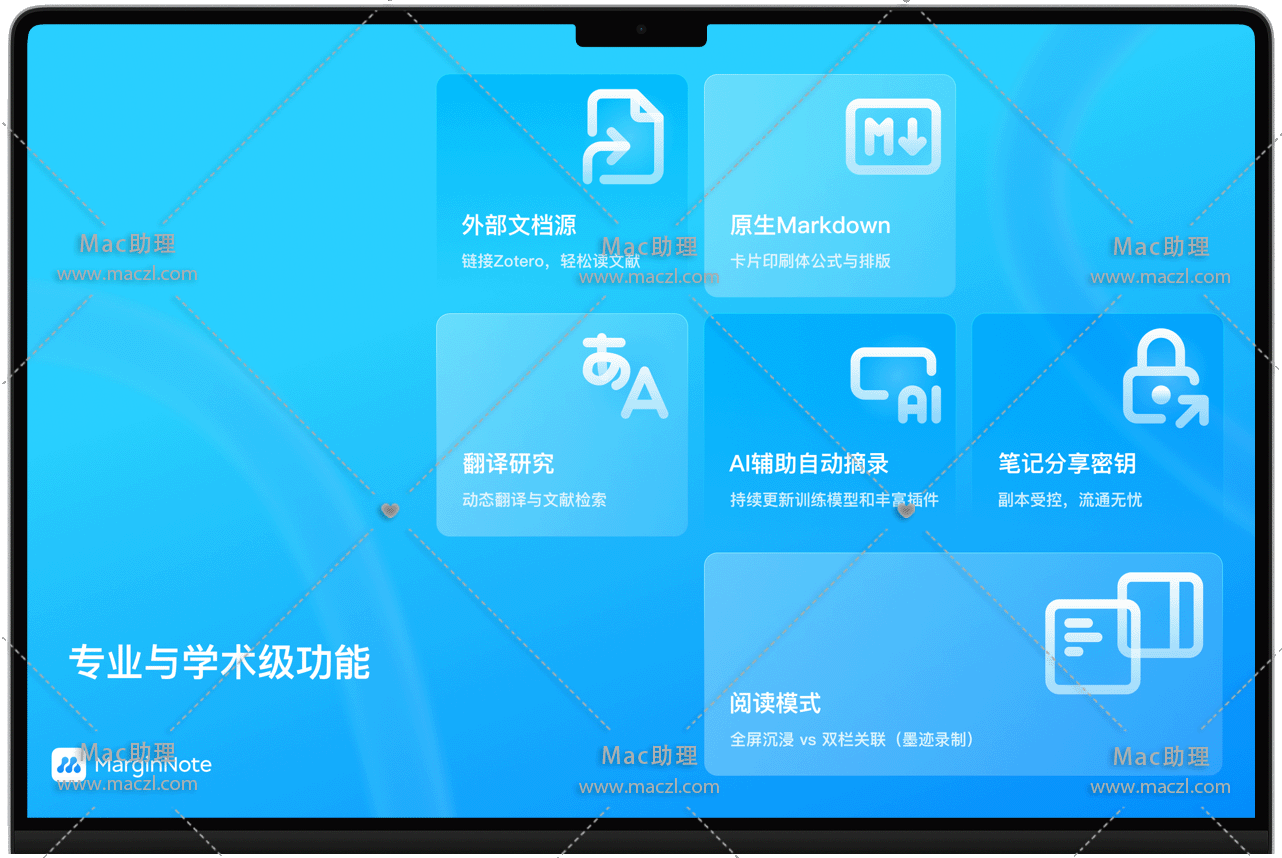 MarginNote for Mac 是一款专注于主动学习与知识整理的全流程工具,支持跨平台使用并提供丰富的PDF/EPUB文档处理功能。MarginNote的丰富功能可以支持预习、课堂学习、课后理解、练习和记忆等不同学习阶段,以教育技术降低普通学习者复刻成功学习经验和前沿理论方法的难度。