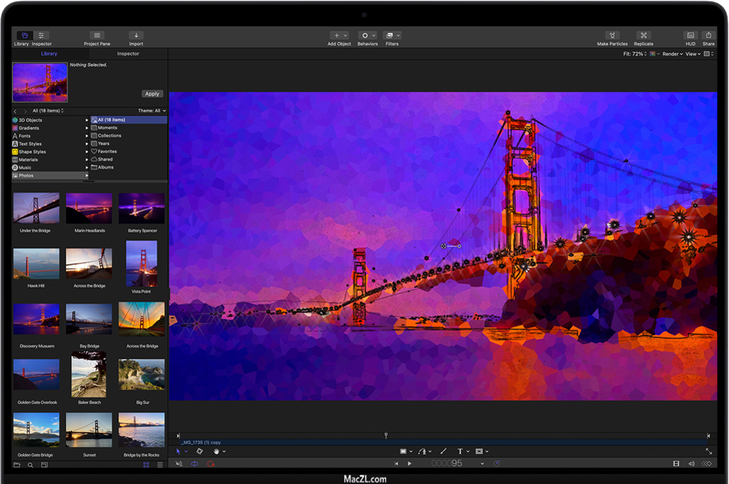 Motion采用实时设计引擎,可让你即时查看工作效果;丰富的工具和内容让你可创作出复杂的图形动画并赋予其出色的动画效果。