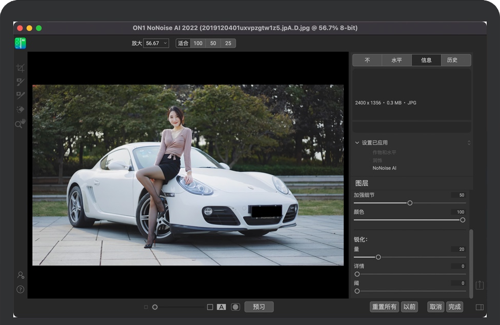 ON1 NoNoise AI 2022 for Mac 是一款去除图像噪点和专业的摄影降噪软件。使用基于AI的 No Noise AI去除噪点并获得照片中最清晰的细节。ON1 NoNoise AI智能去除所有图像噪点,同时智能恢复和增强细节。NoNoise AI通过支持常见的照片编辑器和文件格式集成到您的工作流程中,包括保存保持完整色调和颜色范围的 DNG 原始文件。