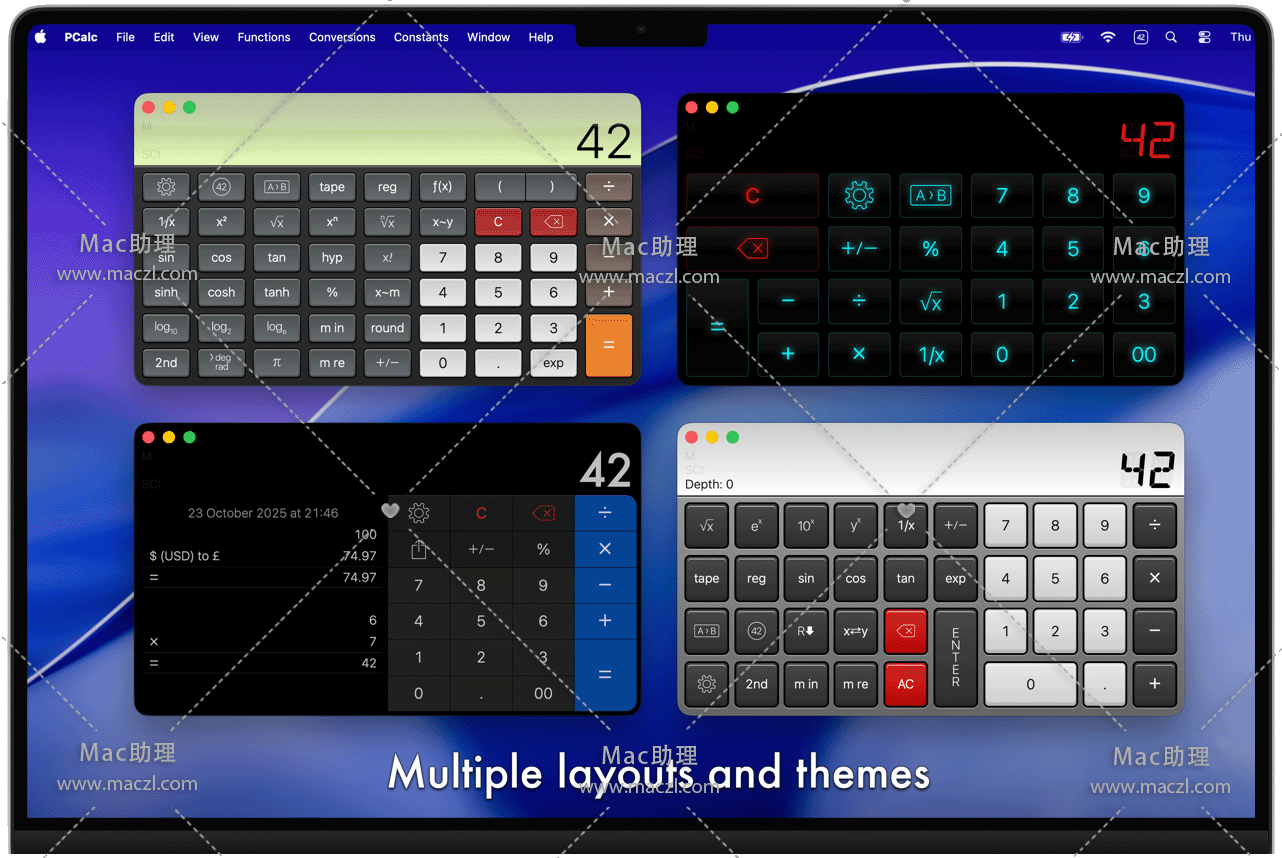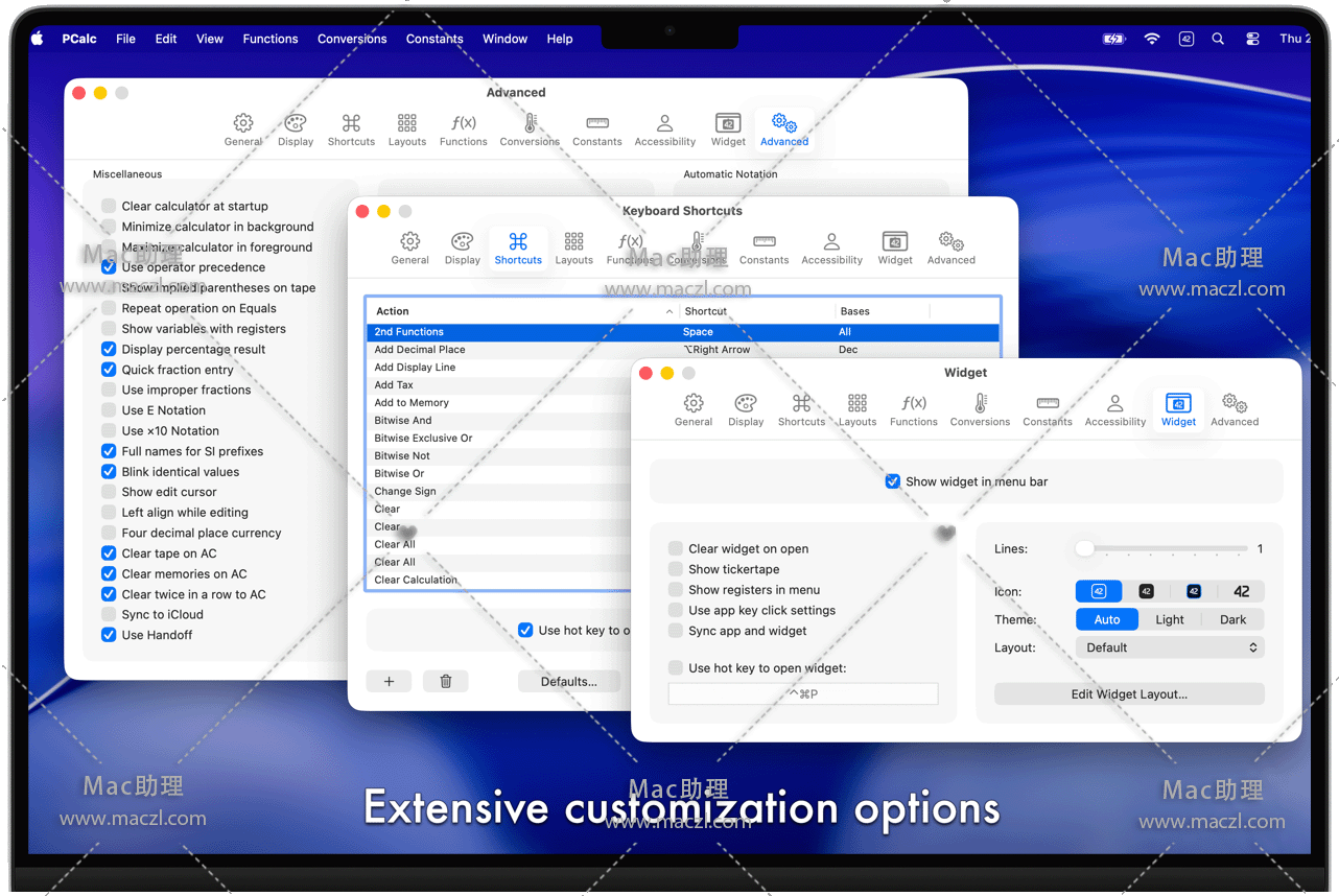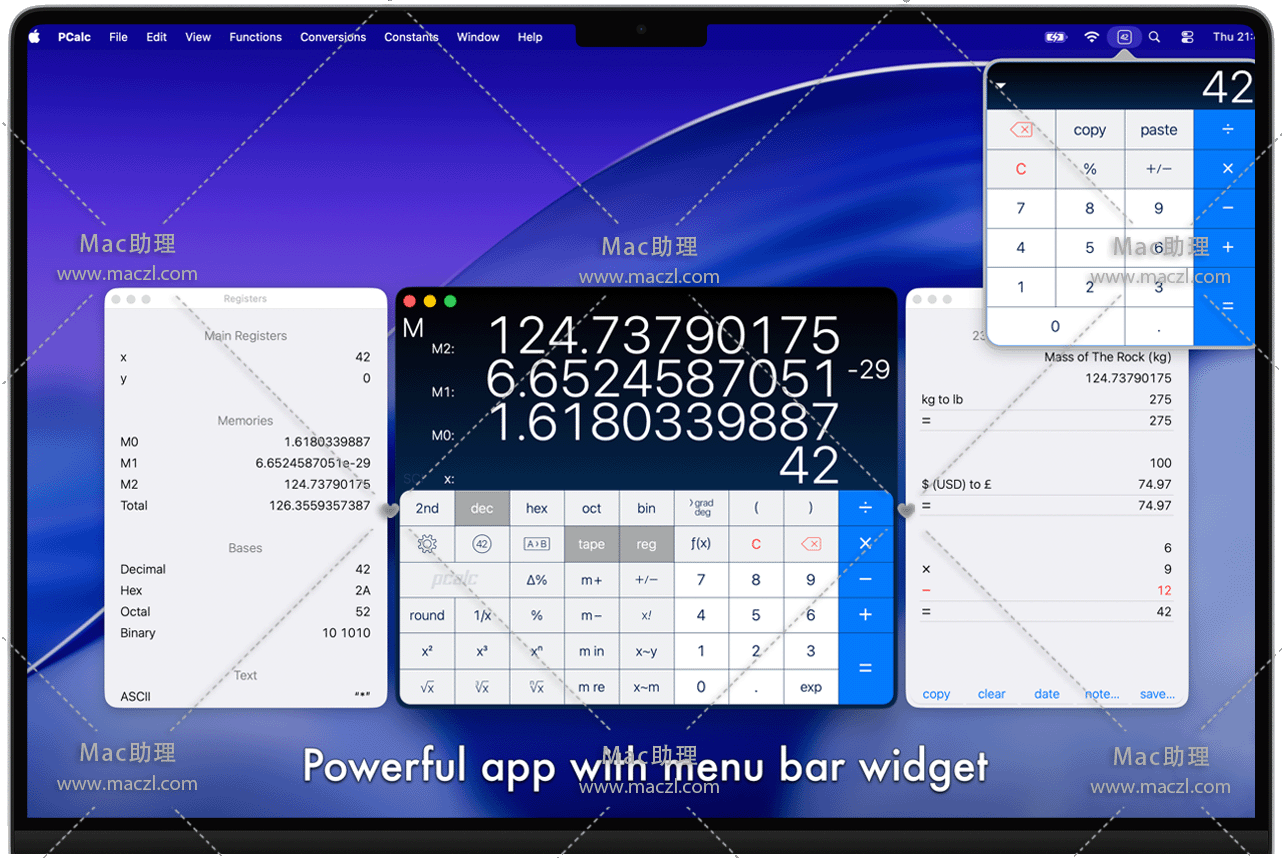 *强大的菜单栏小部件 - 无需离开当前应用程序即可进行快速计算。