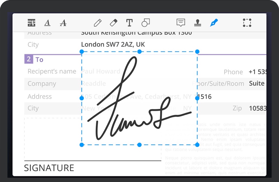 只需单击空白字段并开始输入。或选择“添加文本”功能来填写非交互式PDF表单。