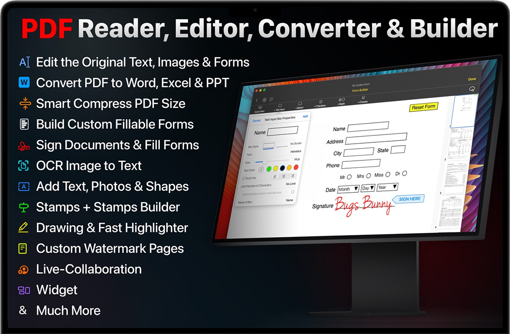 PDF Office Max for Mac 是一款一体式PDF编辑、阅读、填写表单、签名、注释、转换、压缩、协作、OCR图像到文本扫描仪,保护等等!使用PDF Office Max,您可以编辑PDF文本、编辑PDF图像、使用Apple Pencil在PDF文档上绘制(不需要绘制)、将图像转换为文本、邀请人们进行实时协作编辑、填写PDF表单、签署PDF文档、编辑超链接和在iCloud上上传无限PDF,以及从任何iOS和Mac设备访问数据。