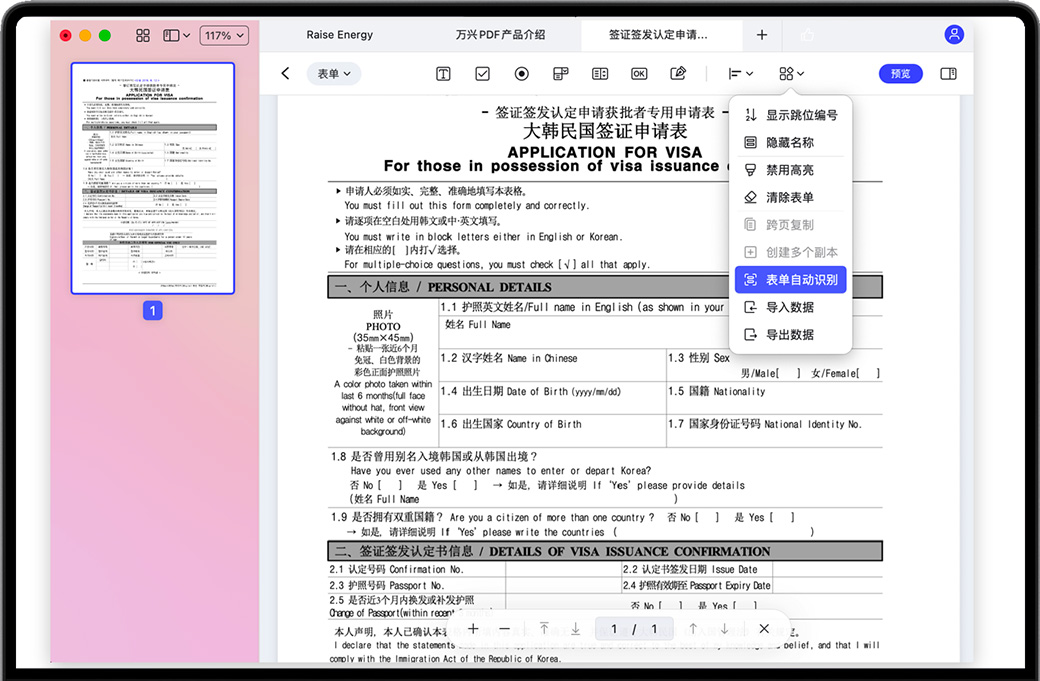 识别并填写PDF表格。