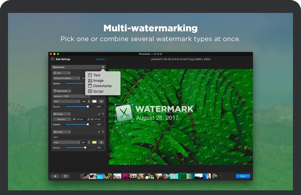 使用PhotoBulk 2节省您的图像处理时间–用于批量/批量调整大小、优化和将水印应用于照片和图像的简单应用程序。