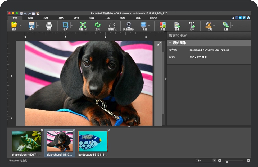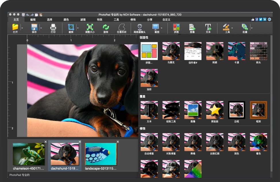 选择PhotoPad的理由: 卓越的编辑功能 操作简单且功能强大,任何人都能轻松地进行专业级照片编辑和图像编辑。 优秀的润饰工具 您可以快速消除红眼,过度曝光和其他常见问题。 海量特果组合 配备各种特效和滤镜,可以立即欣赏并精美处理任何照片。 完美编辑RAW图像 您可以直接从数码单反相机(DSLR)读取和编辑照片。 单击此处查看所有支持格式 即时自动校正 使用自动校正工具可以快速修复照片亮度问题,只需按一下按钮就可以使照片更清晰,更漂亮!
