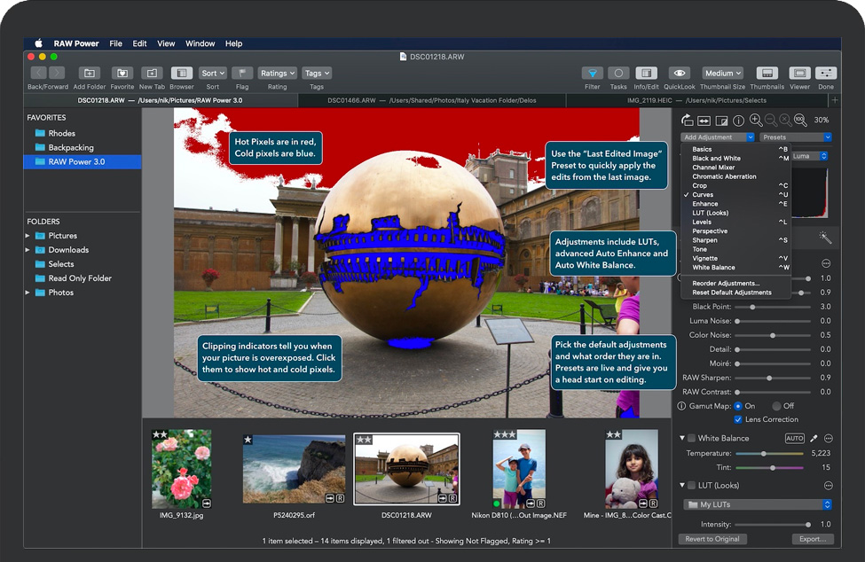 RAW Power 可完美处理 JPEG,这是 Apple 的“照片”所缺少的强大调整(如 LUT、景深效果和彩色边缘等)