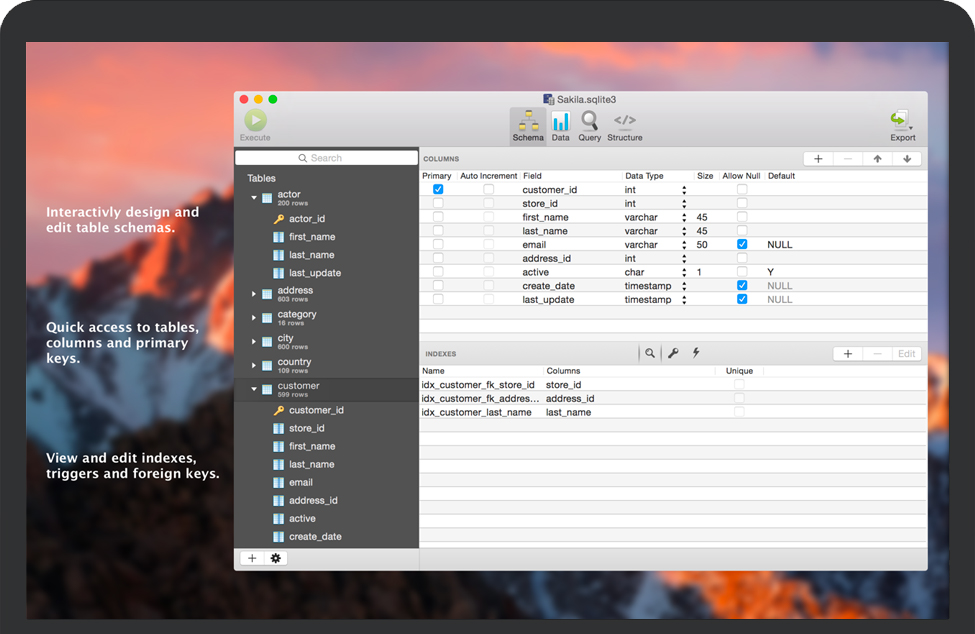 表创建,自定义查询,自动完成和内联数据过滤。只是您可以期望的一些基本功能。无论您是要修改外键,更新某些数据还是修改触发器,我们都可以为您提供帮助。