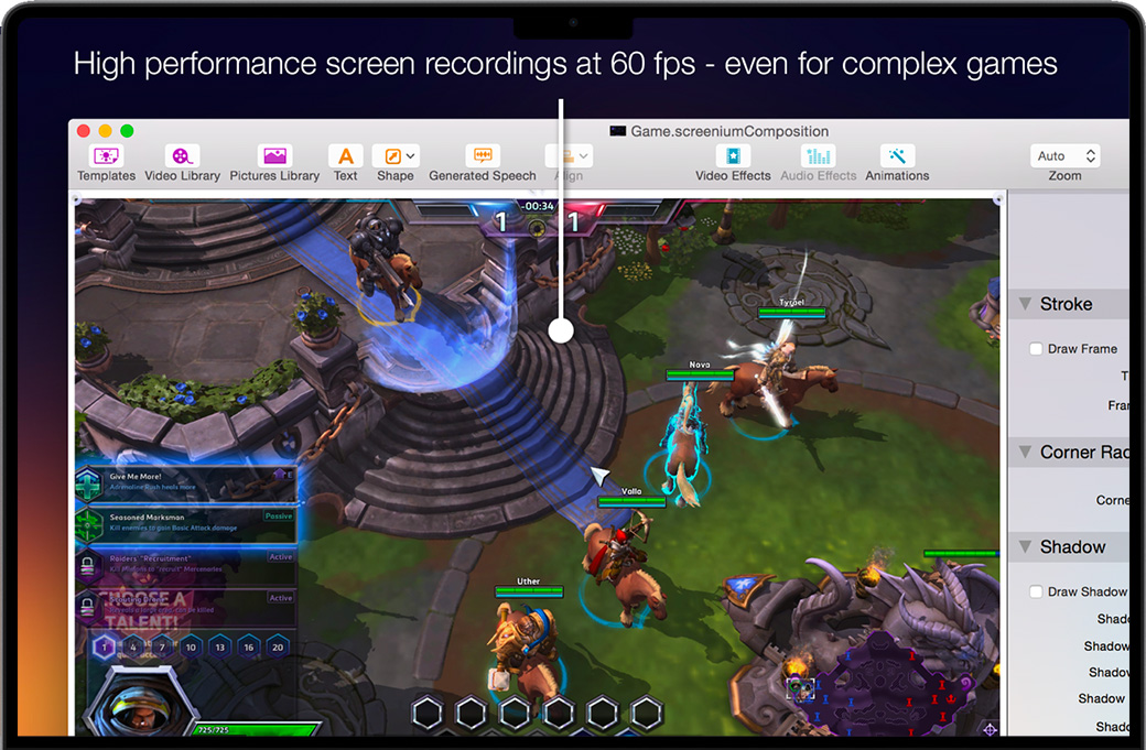 Screenium 3 for Mac能让您以每秒60帧进行录制,为您的教程、游戏录像或是任何其它屏幕内容提供最佳性能。