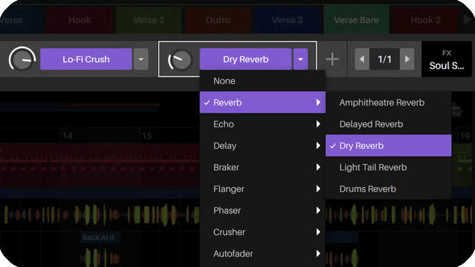 获取强大的FX解锁多达50+内置FX。混合效果,如Epic Reverb Drop、Bitcrush、Shredder和Braker。 |