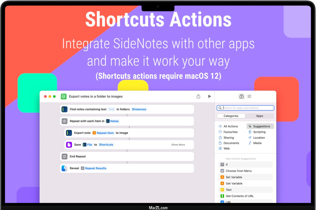 SideNotes for mac 是一款苹MacOS侧边栏笔记应用。它显示和隐藏在显示器的侧面,可以通过鼠标滑动到屏幕边缘呼出SideNotes,通过这种交互方式管理创建笔记将不会分散您的注意力,可以使笔记井井有条,大大提高您的作业效率。