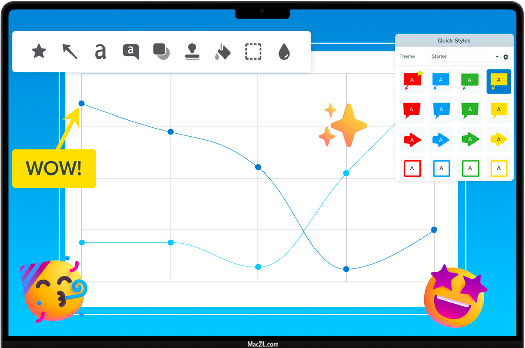 使用专业的标记工具对屏幕抓图进行注释。使用多种预制样式向您的屏幕截图添加个性和专业精神。或者您可以创建自己的。