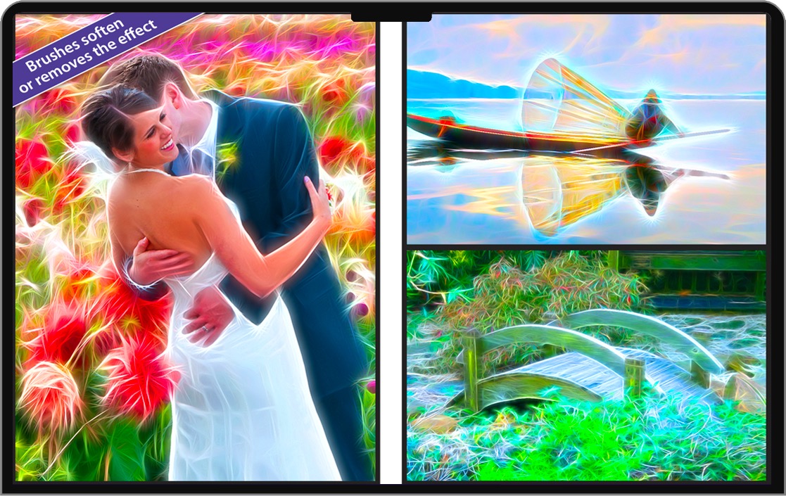 包括一个插件,允许从Photoshop、Elements、Lightroom 和 PaintShop Pro内部快速访问 Spektrel Art。支持动作、透明度、混合、最后过滤命令、批处理和 16 位 RGB/灰度模式。