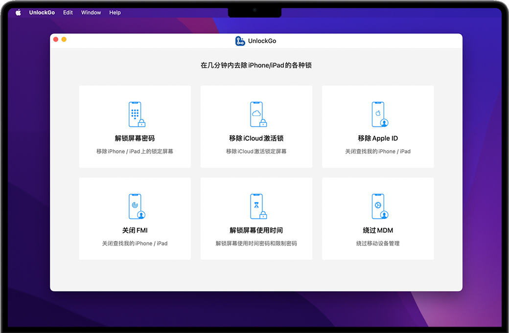 忘记你的iCloud帐户激活了设备?不知道在二手设备上下载应用程序的苹果ID?UnlockGo可以完美地移除iCloud激活锁和Apple ID而无需密码。