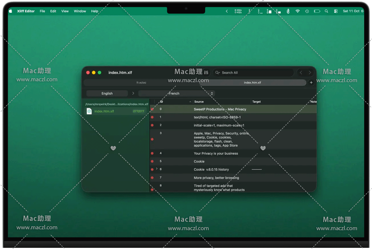 Xliff Editor for Mac-加载速度快,易于使用,内存占用低。Xliff Editor内联标签保护、搜索和;替换、正则表达式搜索、模糊搜索、直观快捷方式、多个并发文件编辑和本地拼写检查器。它还有一些非常好的自定义设置,您可以使用它们来更好地适应您的工作流程。