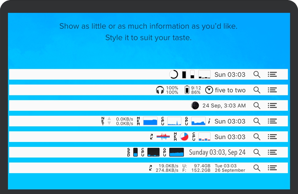 其他选项,如双行菜单栏时钟和压缩文本,可在更少的空间内显示更多内容。