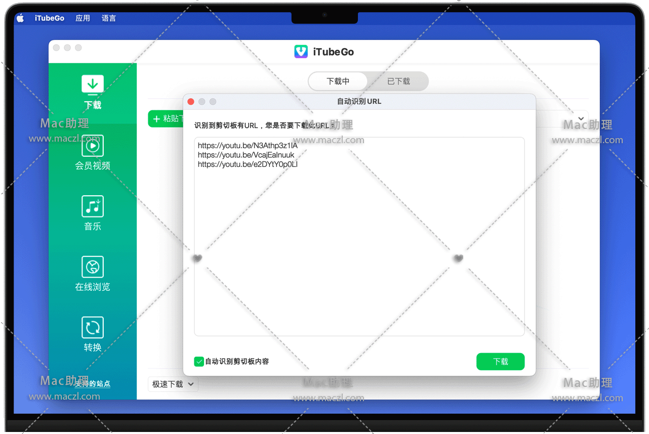 iTubeGo for Mac 是一款功能强大的 YouTube、Facebook、Apple Music、Instagram、Dailymotion 及其他流媒体站点的高清视频下载器,iTubeGo 提供 10 倍的下载速度,能够在 macOS 上批量下载高质量视频和音频。此外,它提供内置浏览器,可以轻松下载视频和音乐,还可以在互动直播服务上下载流媒体视频。