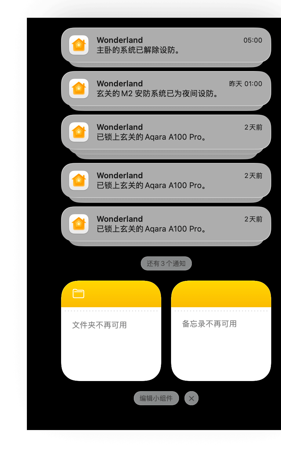 此外,你还可以将「备忘录小组件」添加到「通知中心」,以便快捷访问特定的备忘录或备忘录中的文件夹。