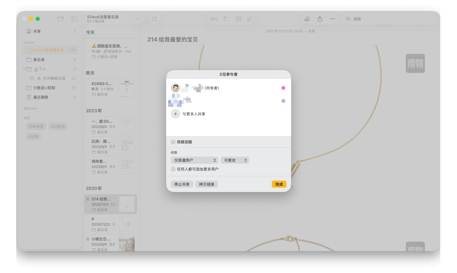 只需选择想要共享的备忘录,点击上方的「共享图标」,即可发起共享邀请。
