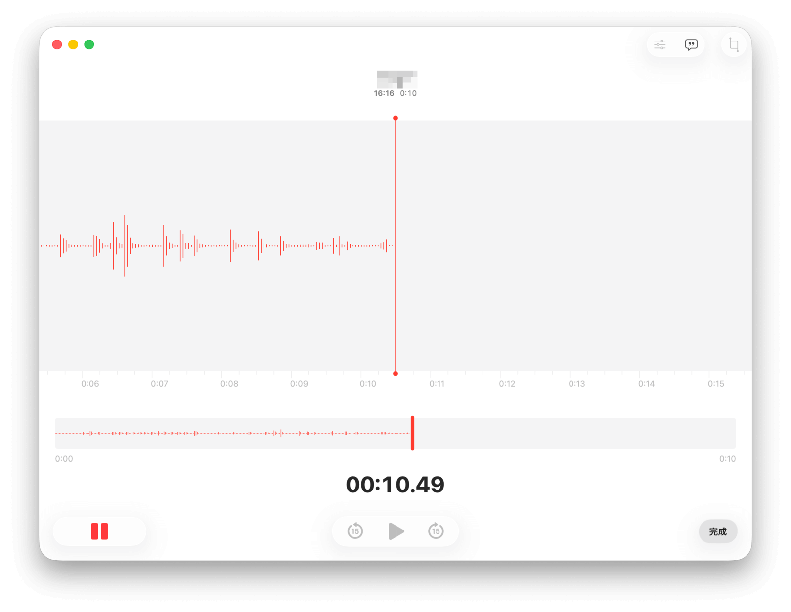在录音过程中,你可以随时点击左下角的「暂停」按钮,并可以移动进度条来检查已录制的部分。