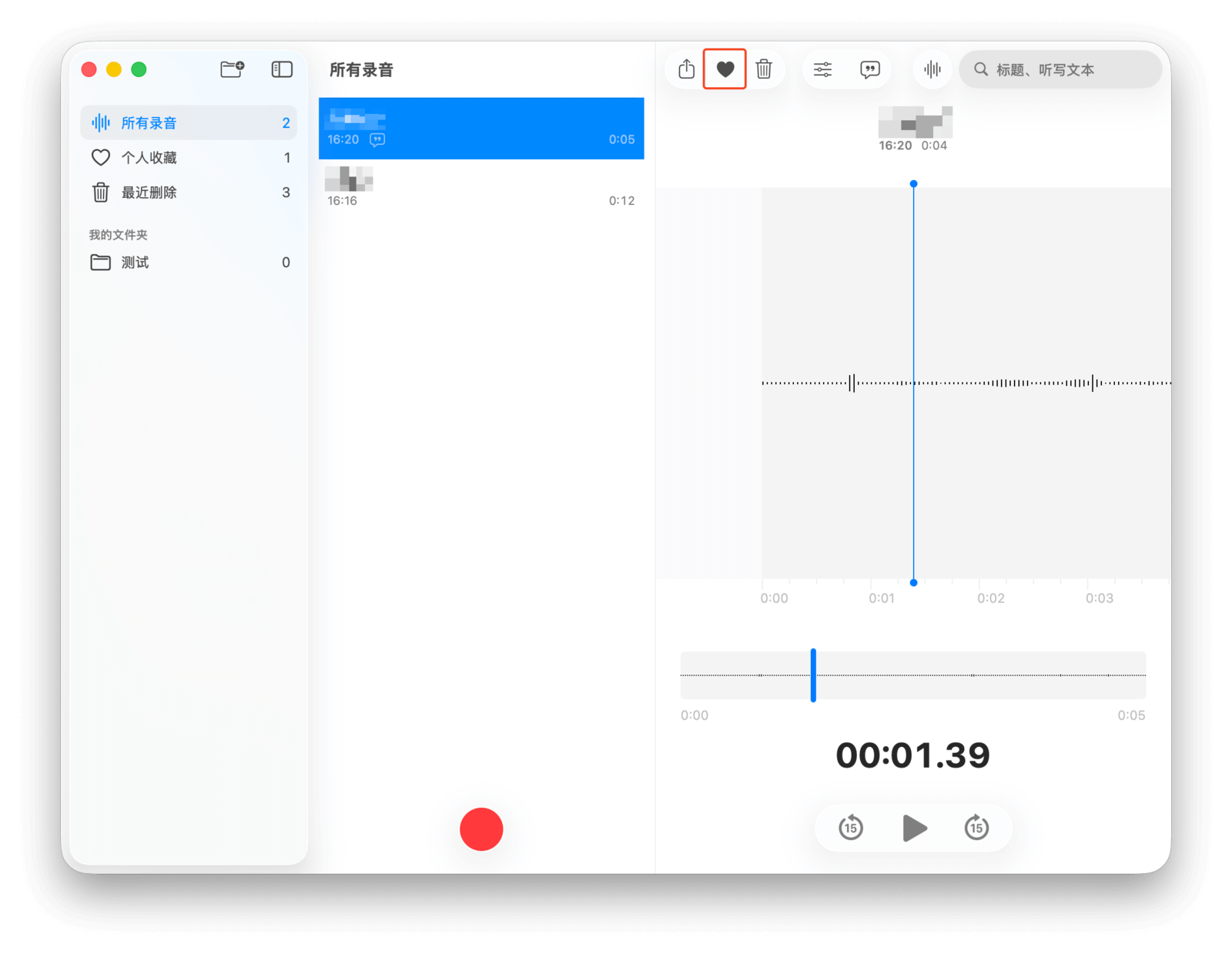 选择想要收藏的语音文件,点击右上角的爱心按钮,即可将文件添加到个人收藏。