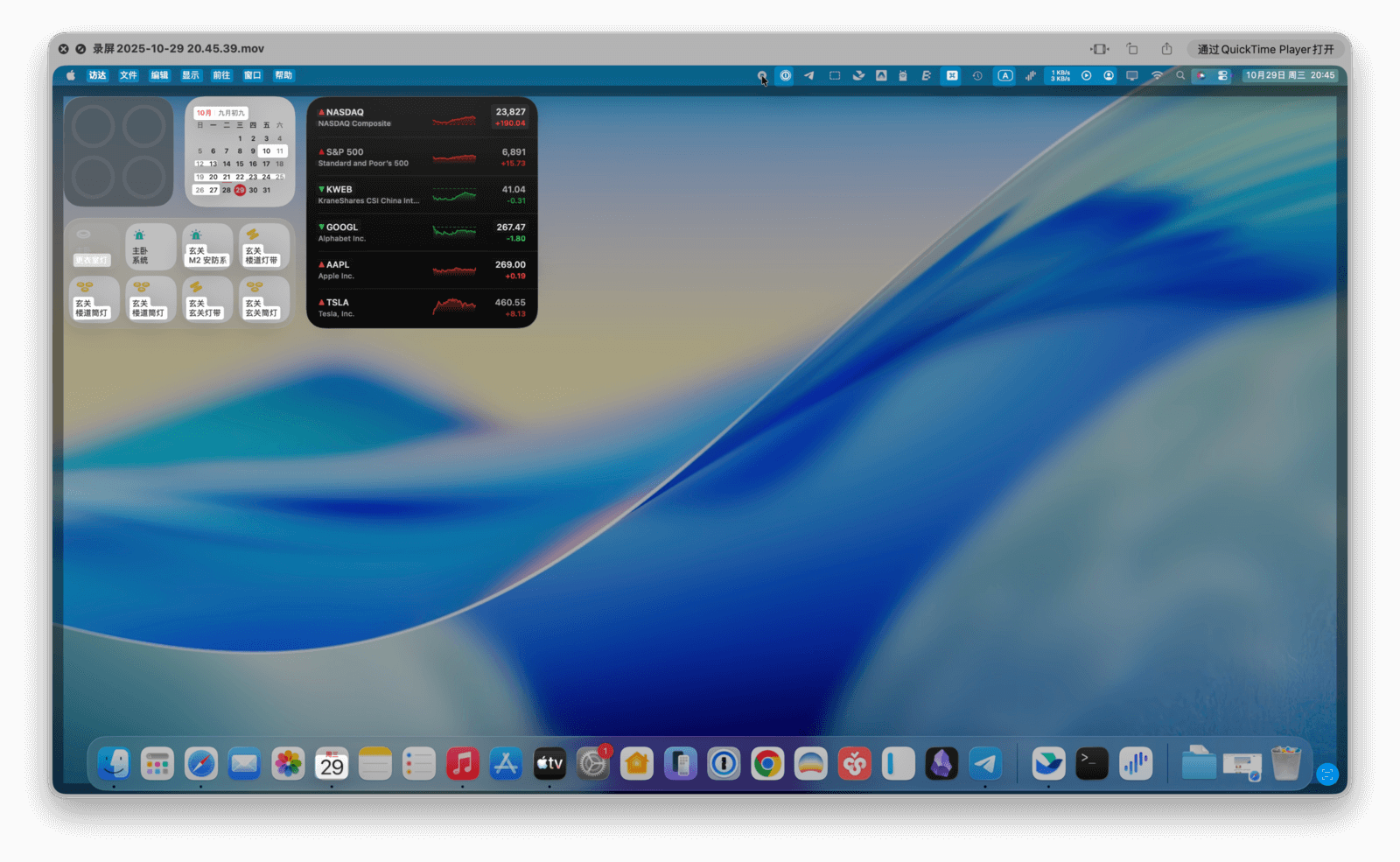 随着视频内容的普及,录屏在工作和生活中的需求也越来越高。macOS 的录屏功能同样提供两种模式:「录制整个屏幕」和「录制所选部分」。和截屏类似,你可以在「选项」菜单中设置存储位置、计时器和浮动缩略图。此外,还可以选择麦克风来源或开启鼠标点按效果——后者在录制教学视频时尤其有用。