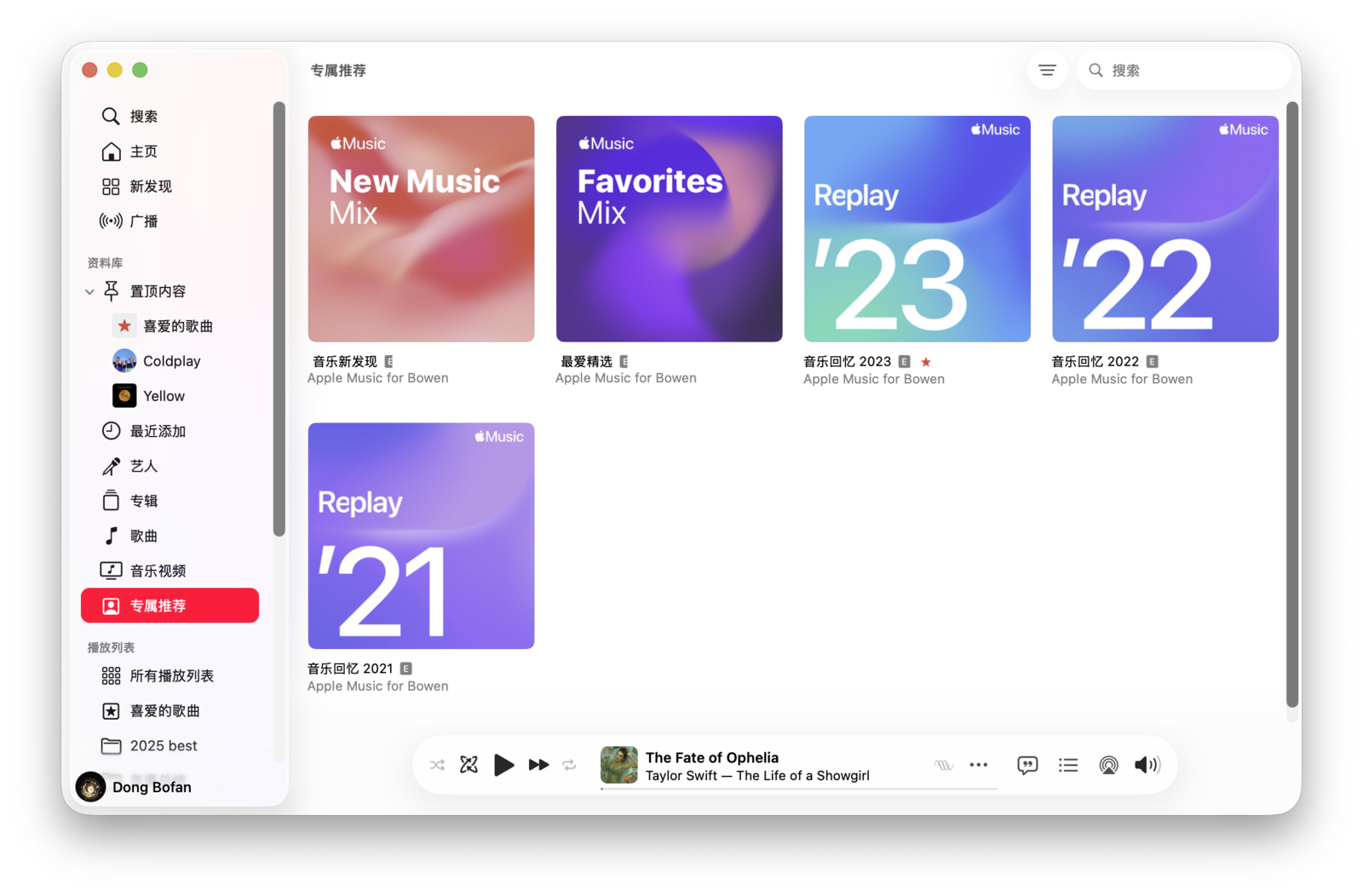 「专属推荐」则稍显特别。Apple Music 一向以人工编辑歌单而闻名,在「专属推荐」中展示的都是苹果官方歌单,例如「能量充电」「最爱精选」等。此外,Apple Music 还在「专属推荐」中为你准备了一份「音乐回忆」,你可以在这里听到自己在不同年份的最爱曲目。