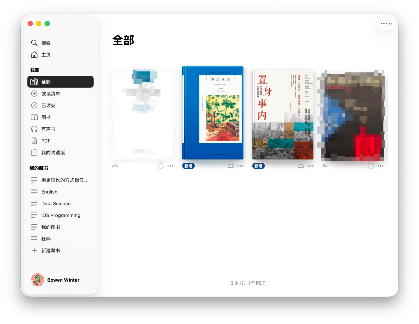 「我的藏书」则展示了你手动创建的分类,你可以将图书手动归置到这些藏书中。