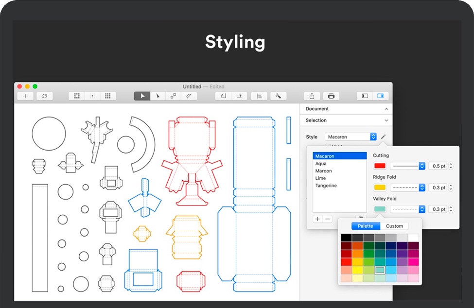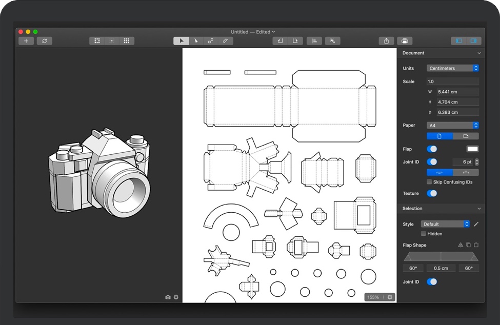 Unfolder for Mac 是一款三维模型设计软件,支持拖放快速为您的3D模型生成2D补丁,并具有智能的展开算法,并为您提供丰富的切换、添加、移除和重塑襟翼形状的工具。此外,还可以对自定义线条的颜色、粗细和虚线等进行完美的控制。