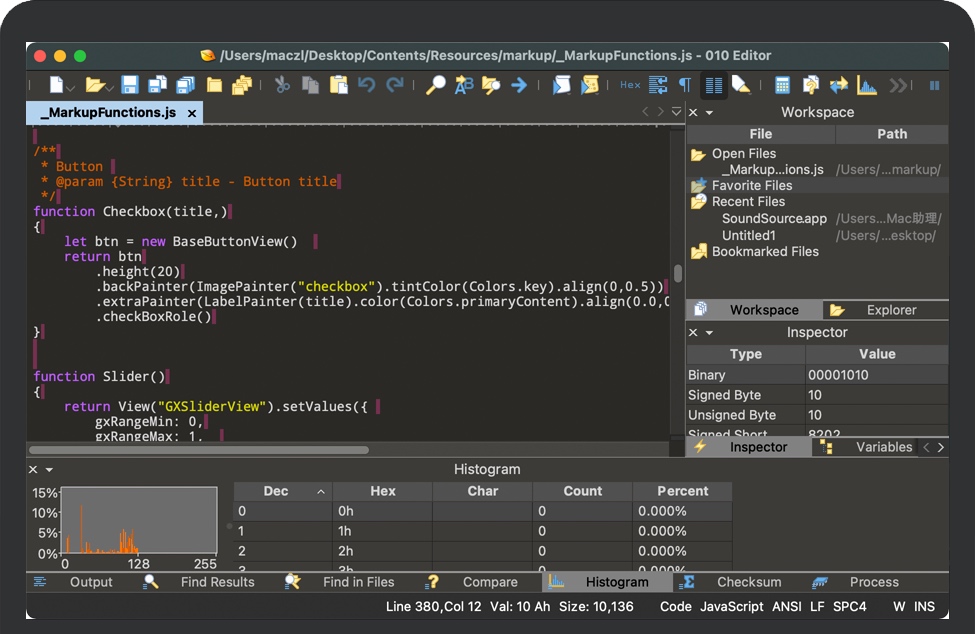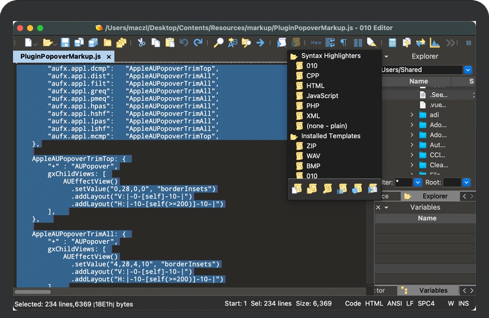 010 Editor for Mac 是一款专业的文本/十六进制编辑器,用于编辑机器上的任何文件、驱动器或进程。使用二进制模板技术,010 Editor允许将二进制文件解析为可理解的数据结构。该编辑器具有标准的“剪切”、“复制”和“粘贴”命令,支持大文件,所有编辑操作无限制的“撤消”和“重做”。使用Inspector可以轻松编辑多种不同格式的数据。