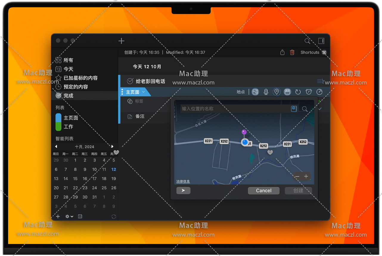 随意忘记检查您的日历。借助这款 Mac 任务管理器的通知功能,您可以在输入任何任务时安排提醒,当时间到时,即使主窗口未打开,应用也会弹出桌面通知。对于不能错过的事件,音频警报将被证明是必不可少的。