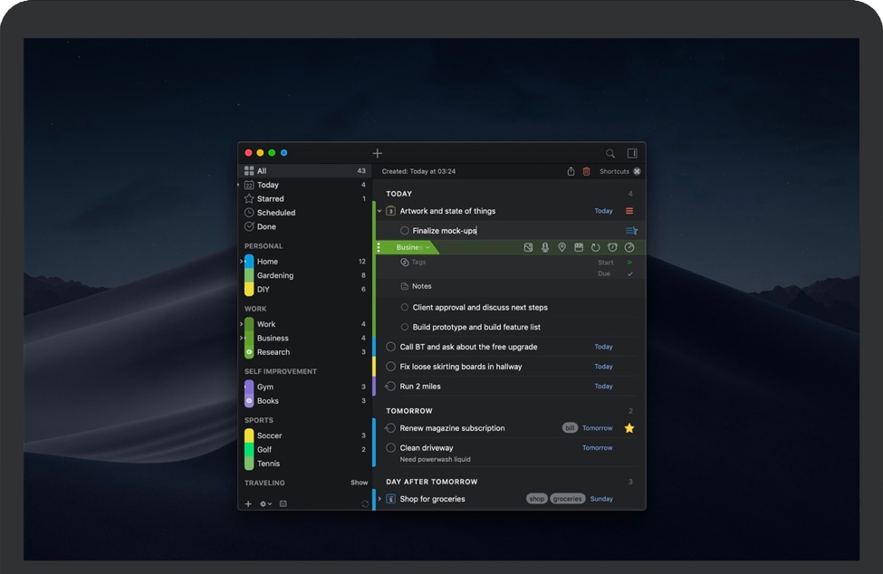 2Do for Mac 是一个简单的Mac任务管理器,可以帮助您采用完全不同的方法来管理您的日常琐事和工作。2Do具有友好的用户界面,再加上一系列功能,使您能够专注于生活中重要的事情。