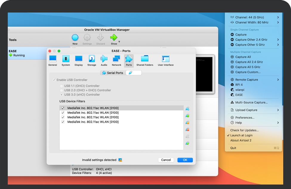 您还可以使用 Airtool 使用功能强大的 Linux 机器和兼容的 Wi-Fi 适配器(例如WLAN Pi)进行远程 Wi-Fi 数据包捕获。